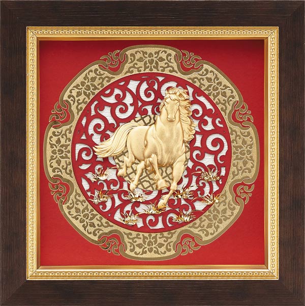 金箔畫 純金 圓形窗花系列 馬【馬到成功】...21x21cm